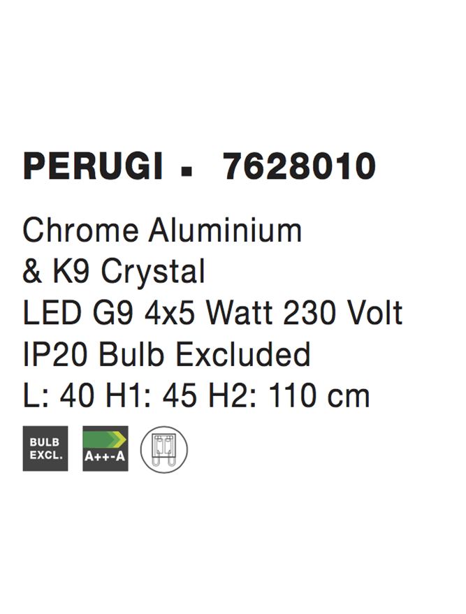 Срок на доставка: ПО ЗАПИТВАНЕ Продуктова информация Материал: Chrome Aluminium & K9 Crystal Тип крушка: LED G9 4x5W IP20 Bulb Excluded Код: 7628010 Тип продукт: CHANDELIERS Размери: L: 40 H1: 45 H2: 110 cm