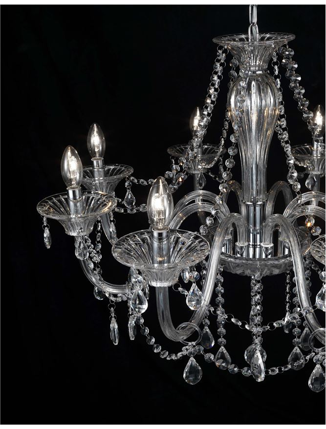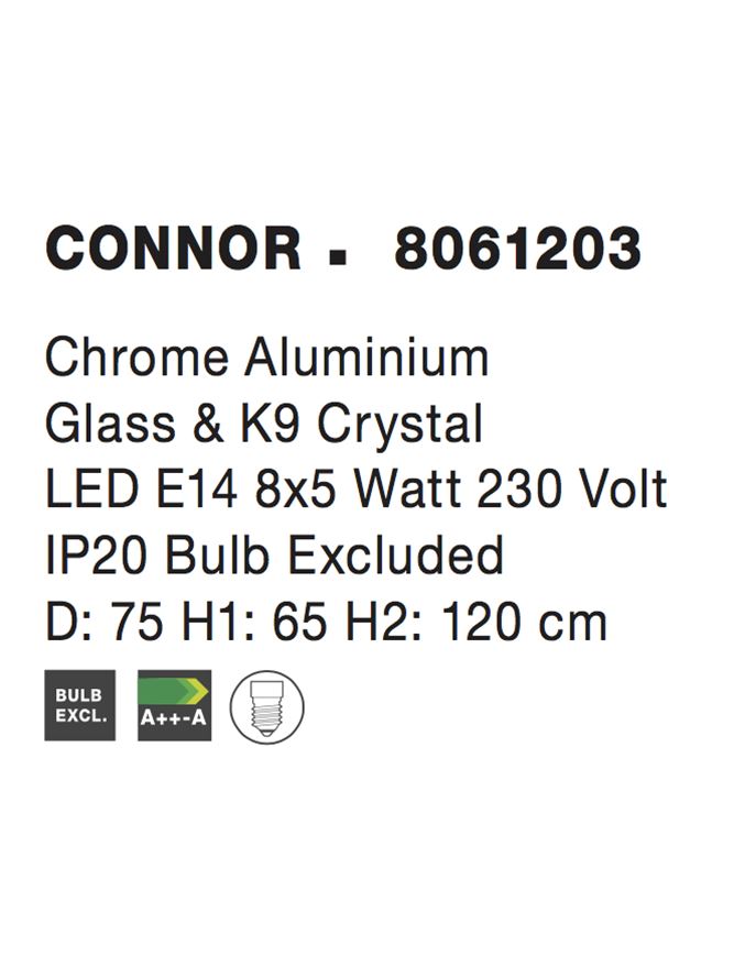 Срок на доставка: ПО ЗАПИТВАНЕ Продуктова информация Материал: Chrome Aluminium Glass & K9 Crystal Тип крушка: LED E14 8×5 Watt 230 Volt IP20 Bulb Excluded Код: 8061203 Тип продукт: CHANDELIERS Размери: D: 75 H1: 65 H2: 120 cm