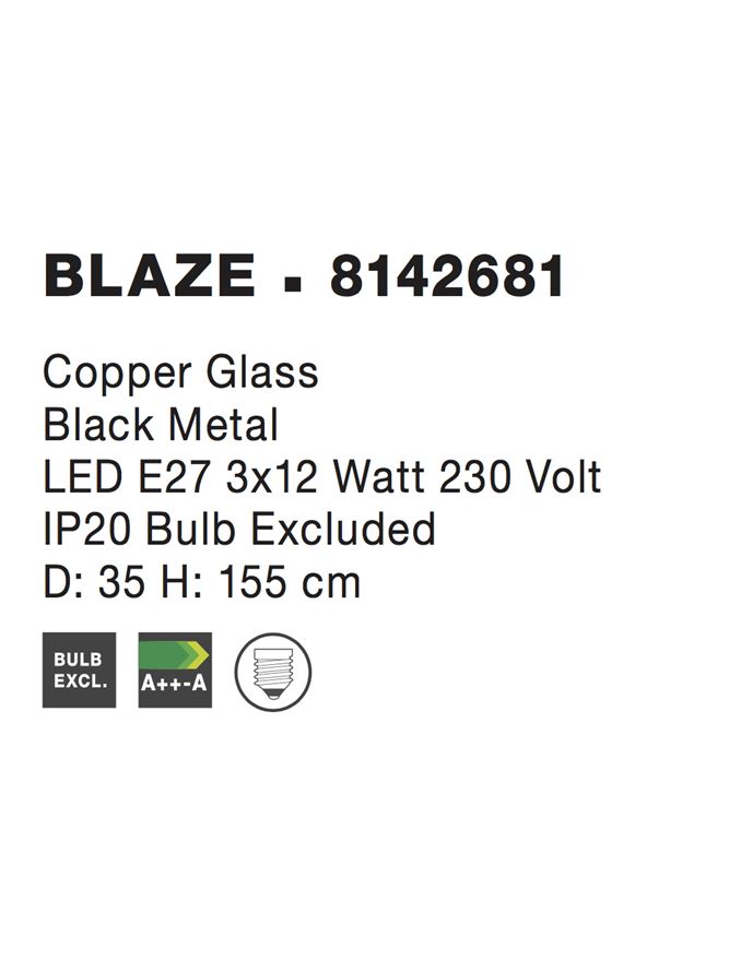 Срок на доставка: ПО ЗАПИТВАНЕ Продуктова информация Материал: Copper Glass Black Metal Тип крушка: LED E27 3×12 Watt 230 Volt IP20 Bulb Excluded Код: 8142681 Тип продукт: LUNAR Размери: D: 35 H: 155 cm