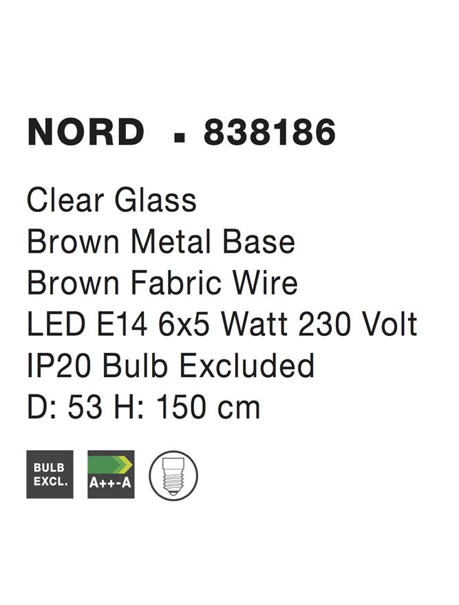 Срок на доставка: ПО ЗАПИТВАНЕ Продуктова информация Материал: Clear Glass-Brown Metal Base-Brown Fabric Wire Тип крушка: LED E14 6×5 Watt 230 Volt IP20 Bulb Excluded Код: 838186 Тип продукт: VINTAGE Размери: D: 37 H: 150 cm