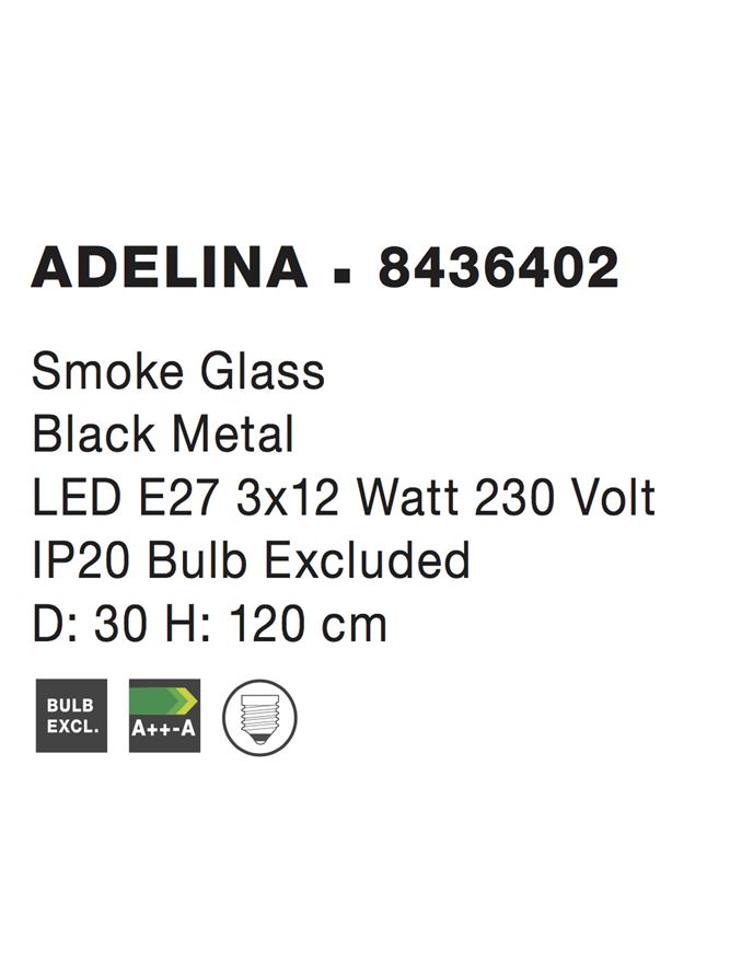 Срок на доставка: ПО ЗАПИТВАНЕ Продуктова информация Материал: Smoky Glass Black Metal Тип крушка: LED E27 3x12W IP20 Bulb Excluded Код: 8436402 Тип продукт: LUNAR Размери: D: 30 H: 120 cm