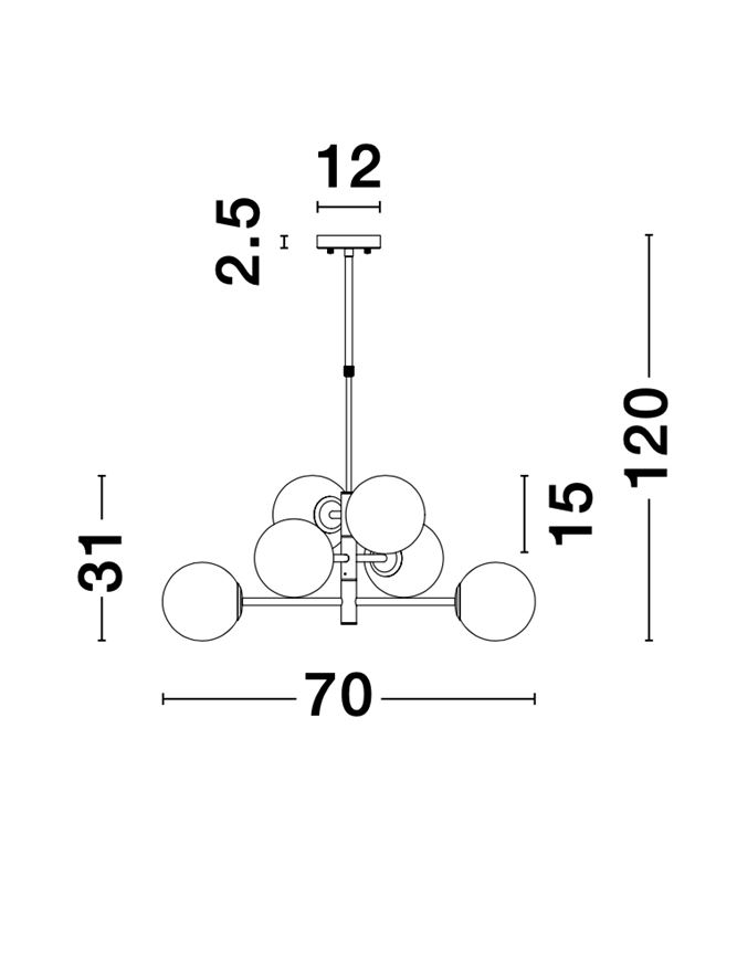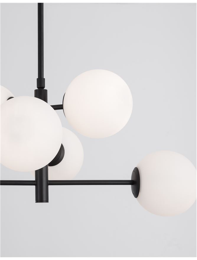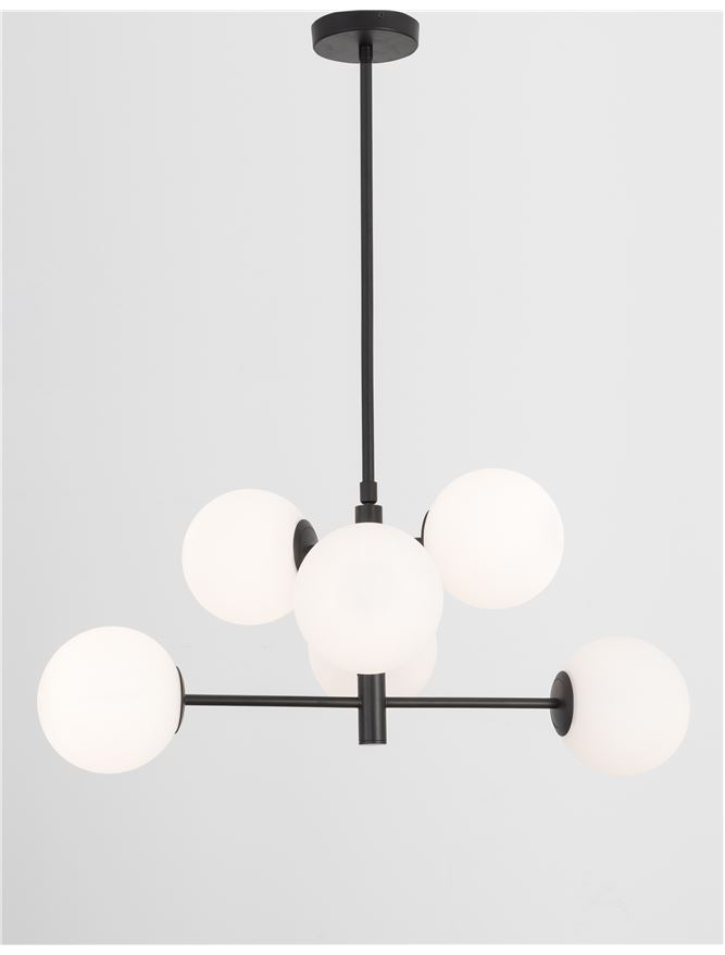 Срок на доставка: ПО ЗАПИТВАНЕ Продуктова информация Материал: White Frosted Glass Black Metal Тип крушка: LED E14 6×5 Watt IP20 Bulb Excluded Код: 9100361 Тип продукт: NOUVELLE Размери: D: 70 H1: 31 H2: 120 cm