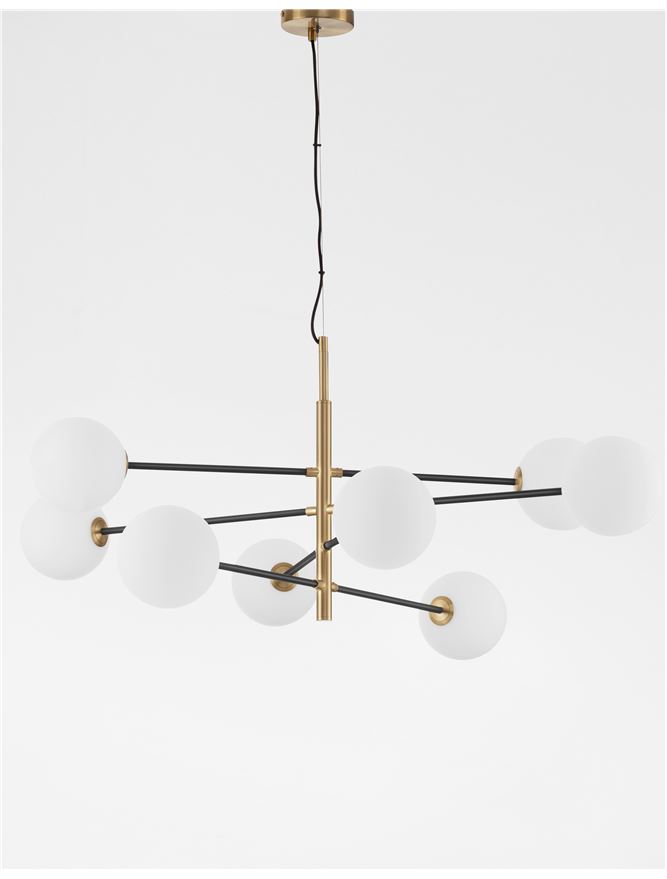 Срок на доставка: ПО ЗАПИТВАНЕ Продуктова информация Материал: Satin Gold & Black Metal White Opal Glass Тип крушка: LED G9 8×5 Watt 220 Volt IP20 Bulb Excluded Код: 9143308 Тип продукт: NOUVELLE Размери: L: 120 W: 103 H1: 45 H2: 145 cm