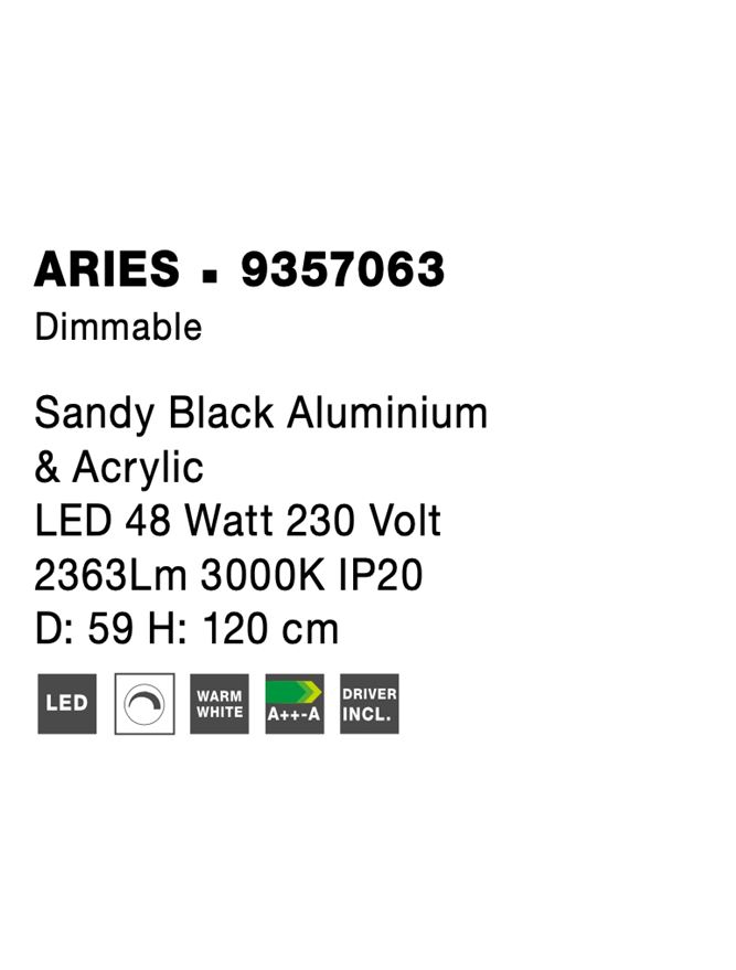 Срок на доставка: ПО ЗАПИТВАНЕ Продуктова информация Материал: Dimmable Sandy Black Aluminium & Acrylic Тип крушка: LED 48 Watt 230 Volt 2363Lm 3000K IP20 Код: 9357063 Тип продукт: INFINITY Размери: D: 59 H: 120 cm
