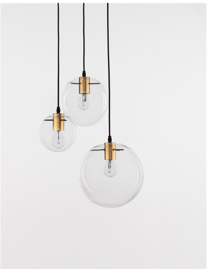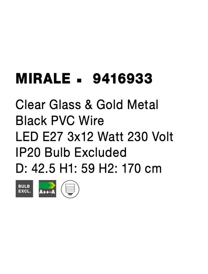Срок на доставка: ПО ЗАПИТВАНЕ Продуктова информация Материал: Clear Glass & Gold Metal, Black PVC Wire Тип крушка: LED E27 3×12 Watt 230 Volt IP20 Bulb Excluded Код: 9416933 Тип продукт: NOUVELLE Размери: D:42.5 H1:59 H2:170 cm