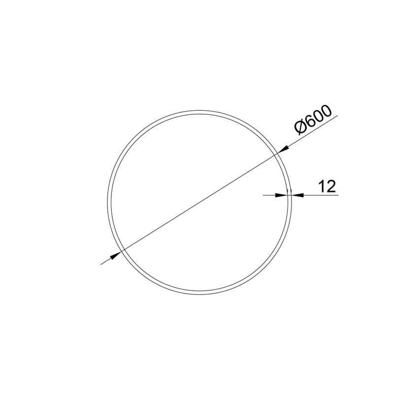 ACA LIGHTING PROFILES P30T600 – ORIO BLACK ALUMINUM PROFILE WITH OPAL PC DIFFUSER OUTWARD Φ600
