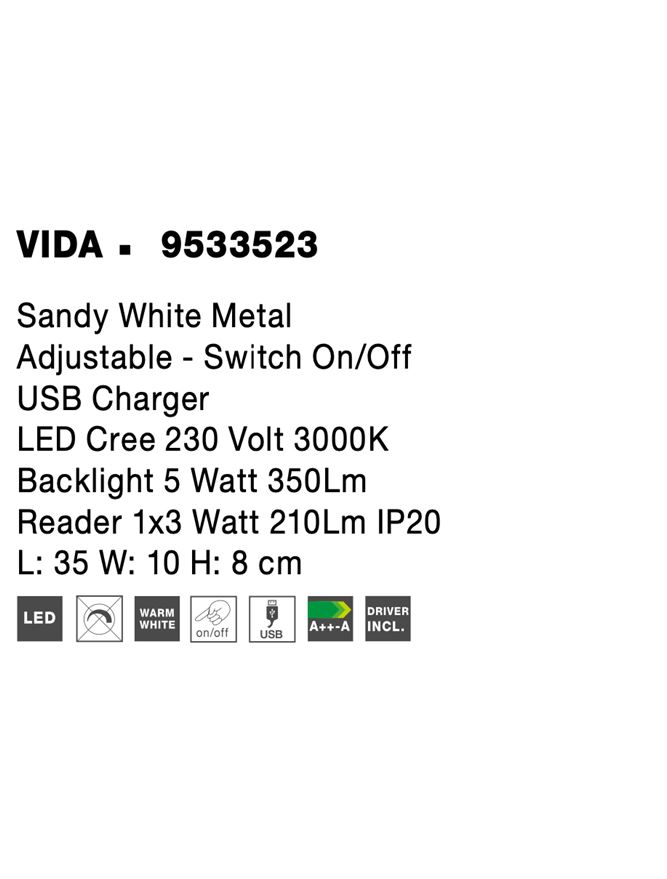 Лед аплик 9533523 e осветително тяло в съвременен стил, което е подходящо за всекидневна / хол, спалня, офис. Тази led лампа е с европейско качество гарантирано от nova-luce (гърция)- компания с традиции в изработката на лед осветителни тела