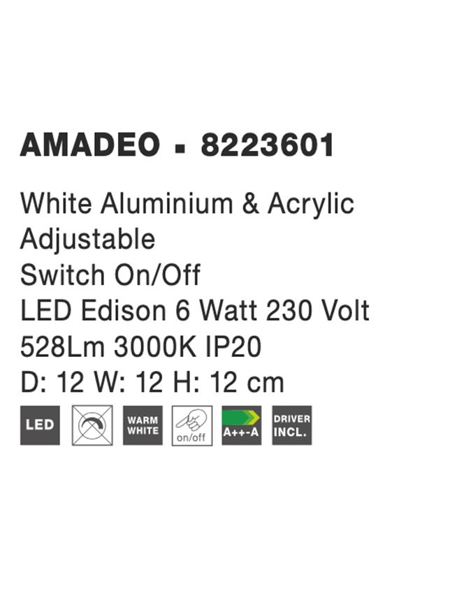 Лед аплик, спот лампа 8223601 e осветително тяло в съвременен стил, което е подходящо за всекидневна / хол, спалня, детска стая, кухня, трапезария, офис. Тази led лампа е с европейско качество гарантирано от nova-luce (гърция)- компания с традиции в изработката на лед осветителни тела