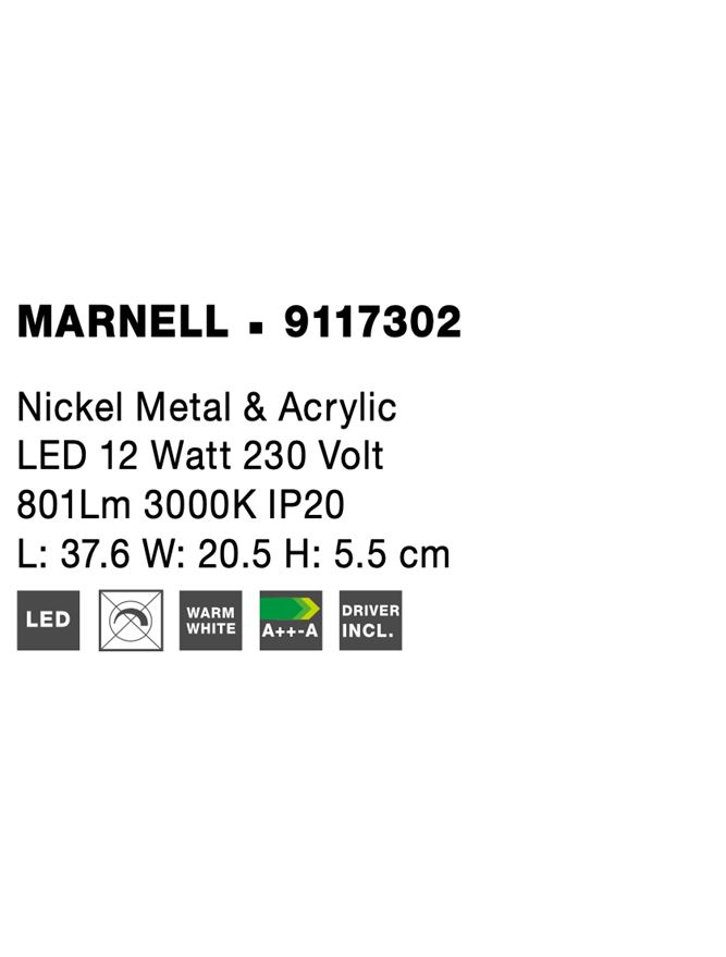Срок на доставка: ПО ЗАПИТВАНЕ Продуктова информация Материал: Nickel Metal & Acrylic Тип крушка: LED 12 Watt 230 Volt 801Lm 3000K IP20 Код: 9117302 Тип продукт: WALL LUMINAIRES Размери: L: 37.6 W: 20.5 H: 5.5 cm