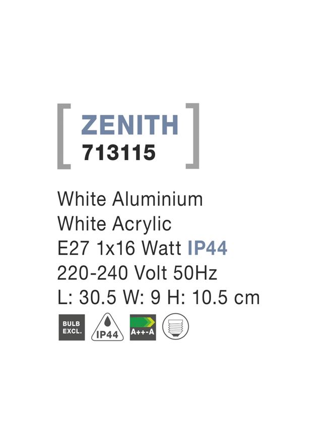 Аплик, външна лампа 713115 e осветително тяло в съвременен стил, което е подходящо за външно осветление, фасадно осветление. Осветителното тяло е с високо европейско качество, гарантирано от nova-luce (гърция) – утвърдена компания в европа за производството на осветителни тела.