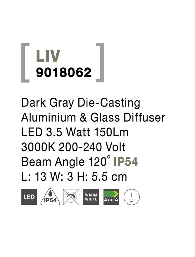 Лед аплик, външна лампа 9018062 e осветително тяло в съвременен стил, което е подходящо за външно осветление, фасадно осветление. Тази led лампа е с европейско качество гарантирано от nova-luce (гърция)- компания с традиции в изработката на лед осветителни тела