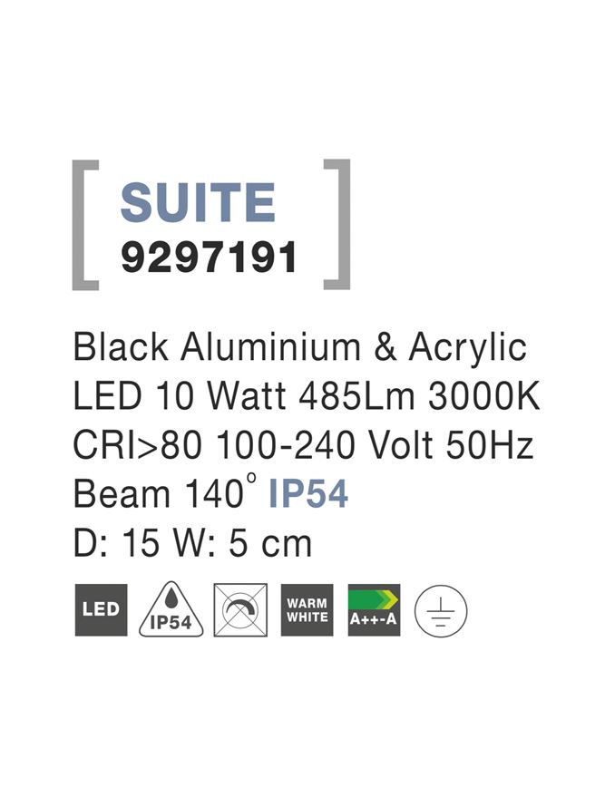 Лед аплик, външна лампа 9297191 e осветително тяло в съвременен стил, което е подходящо за външно осветление, фасадно осветление. Тази led лампа е с европейско качество гарантирано от nova-luce (гърция)- компания с традиции в изработката на лед осветителни тела