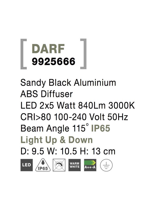 Лед аплик, външна лампа 9925666 e осветително тяло в съвременен стил, което е подходящо за външно осветление, фасадно осветление. Тази led лампа е с европейско качество гарантирано от nova-luce (гърция)- компания с традиции в изработката на лед осветителни тела