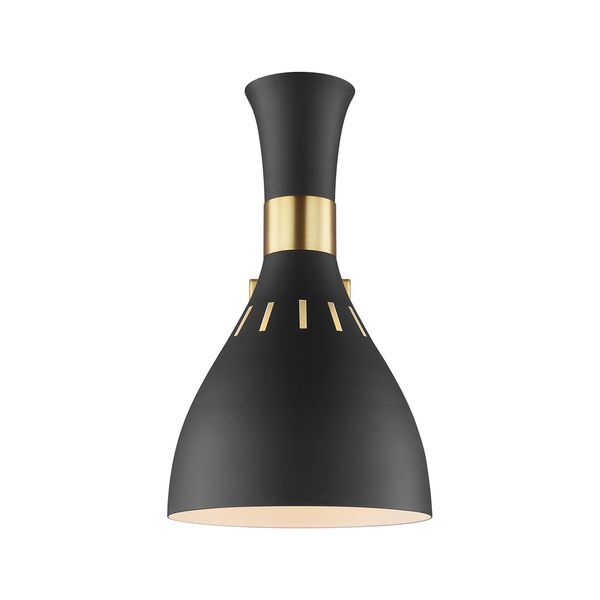 Елегантен аплик от серията Joan, състоящ се от матиран месинг метална основа и рамо с подвижен черен конусовиден разсейвател. Прекрасно решение за Вашето интериорно осветление.