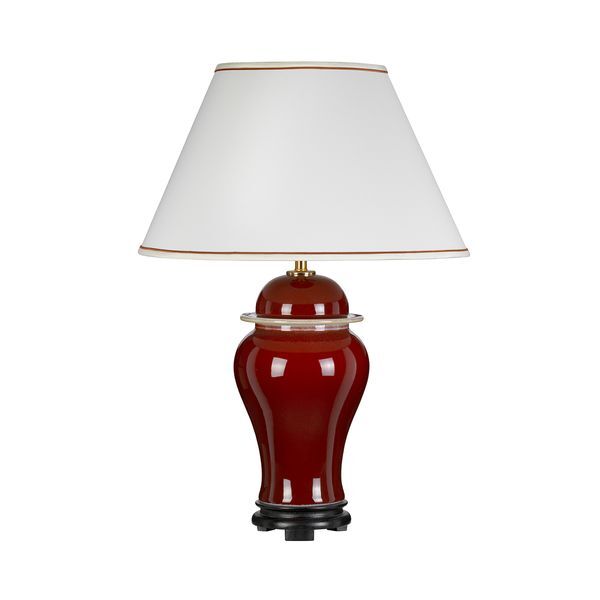 An Oxblood oriental ceramic temple jar including an Off-White Polycotton with ivory and gold trim. ELS-DL-OXBLOOD-TJ-TL