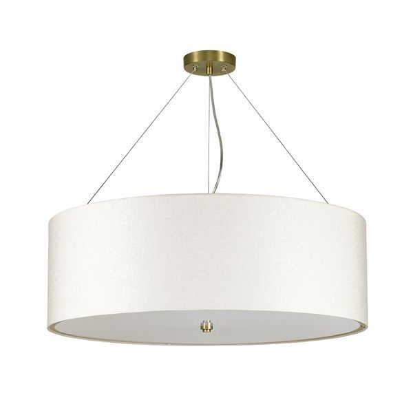 This pendant with suspension wires is available in stock with a faux silk Ivory shade. Choose from 6 different size options with either a Polished Chrome or Aged Brass Ceiling pan and finial. A gloss white acrylic bottom diffuser is included. See our shade catalogue for more shade colours and customised option. ELS-DL-PEARCE30-7LT-IV-AB