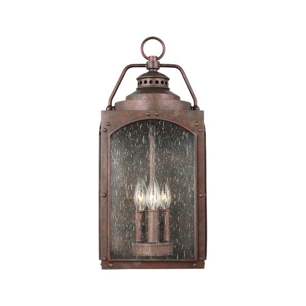 Класически градински аплик с оригинален дизайн, състоящ се от метално тяло с формата на модерна интерпретация на античен газов фенер в медно оксидно покритие и прозрачни стъклени панели. Стилна лампа с висока степен на влагозащита: IP44, която ще придаде исторически чар на всяка фасада, веранда и тераса във вашия дом, вила, хотел и заведение.