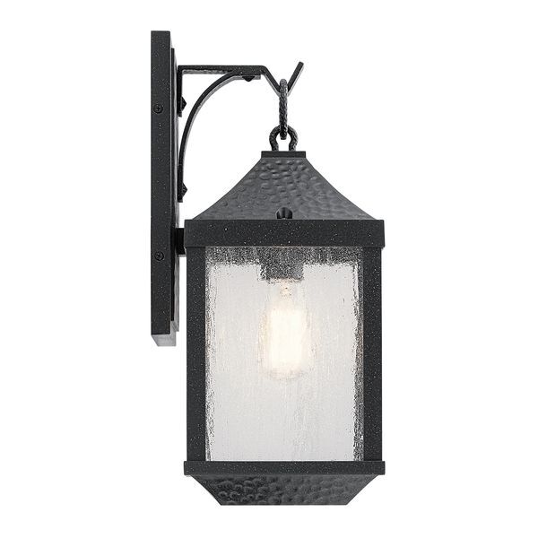 The Springfield lanterns offer classic style with a weathered effect aluminium. The hammered-look metal and Distressed Black finish gives each fixture texture and character, while the seeded glass softly diffuses the light. ELS-KL-SPRINGFIELD-M