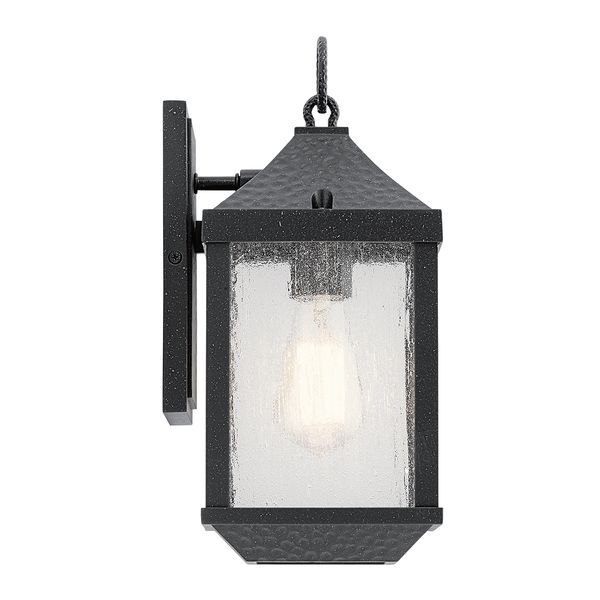 The Springfield lanterns offer classic style with a weathered effect aluminium. The hammered-look metal and Distressed Black finish gives each fixture texture and character, while the seeded glass softly diffuses the light. ELS-KL-SPRINGFIELD-S
