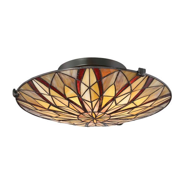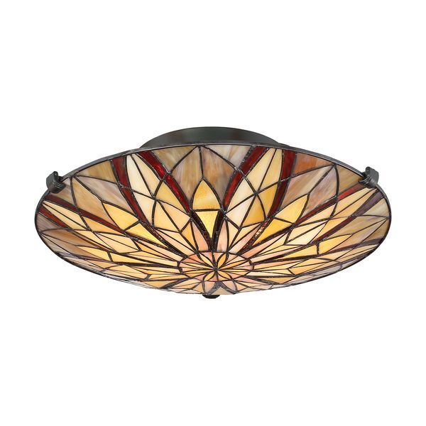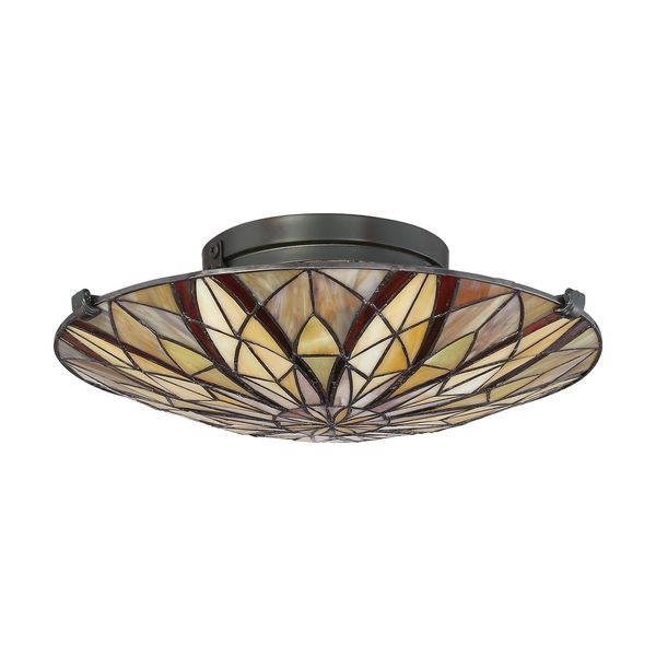 The Victory collection illuminates your home with varying shades of yellow and red Tiffany glass arranged in criss-crossing long swoops. Finished in Valiant Bronze for a sophisticated look. ELS-QZ-VICTORY-SF