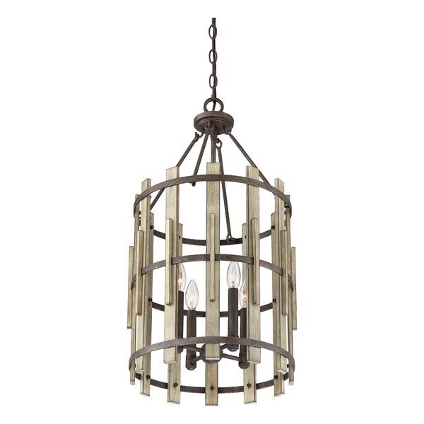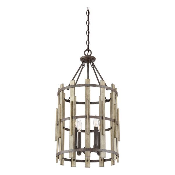 Wood Hollow’s mission-inspired design combines rustic black framing and metal arcs coated in textured paint to create a convincing faux wood slat effect. A dark ash finish and vintage rivet accents complete this farmhouse-ready collection. ELS-QZ-WOOD-HOLLOW-4P