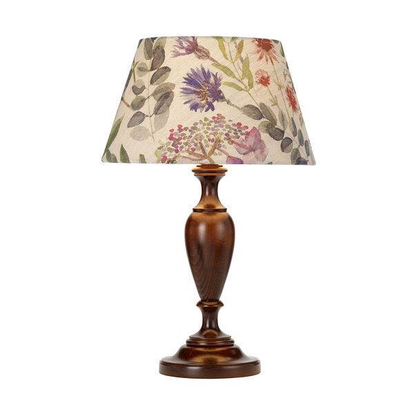 Medium Turned Wood table lamp base with Walnut finish manufactured in England. Choose from a range of 12“ shade options. ELS-DL-WS-TL-M-WL