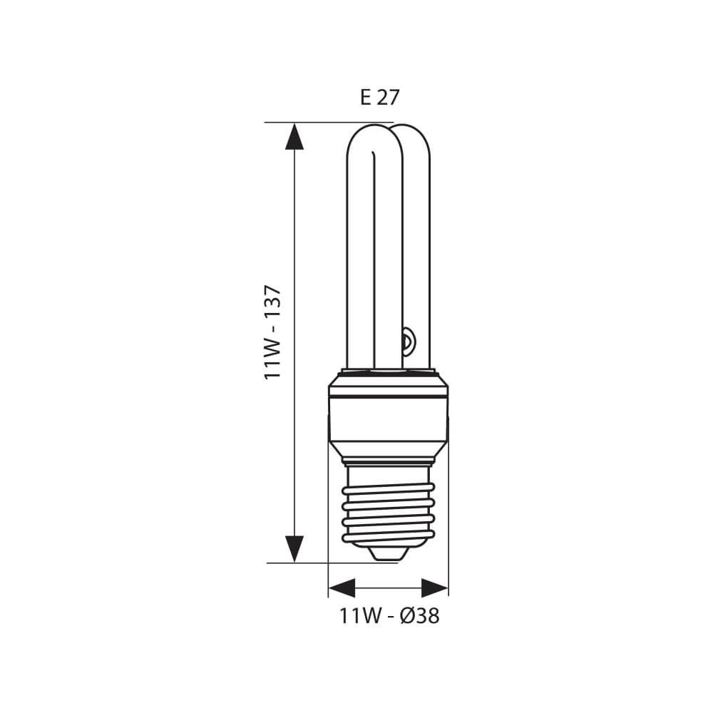 Декларация СерияECO LINE Мощност(W)11W Светлинен поток (lm)600lm Цветна температура (K)6400K (дневна светлина) Напрежение (V)230V ЦокълE27 Размери (mm)Ø38x137mm Живот на осветителя (h)10000h Димиранене се димира Гаранция12 месеца гаранция