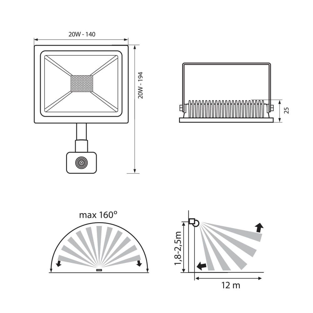 VIVALUX 3974 LED ПРОЖЕКТОР СЪС СЕНЗОР NYX LED ∙ 20W ∙ ЧЕРЕН ∙ 6400K ∙ IP44