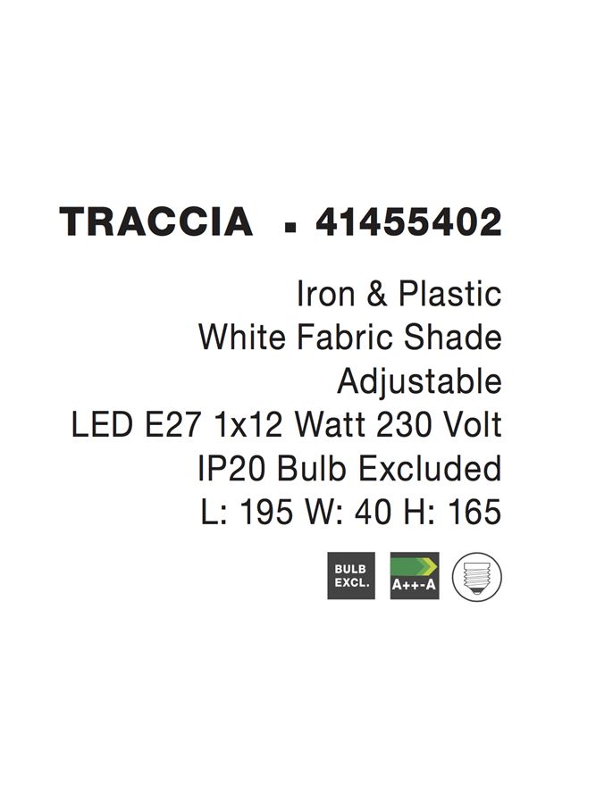 Срок на доставка: ПО ЗАПИТВАНЕ Продуктова информация Материал: Iron & Plastic White Fabric Shade Adjustable Тип крушка: LED E27 1x12W IP20 Bulb Excluded Код: 41455402 Тип продукт: FLOOR – TABLE Размери: L: 195 W: 40 H: 165