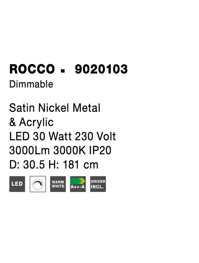 Лед лампион / правостояща лампа 9020103 e осветително тяло в съвременен, дизайнерски стил, което е подходящо за всекидневна / хол, спалня, трапезария, офис. Тази led лампа е с европейско качество гарантирано от nova-luce (гърция)- компания с традиции в изработката на лед осветителни тела