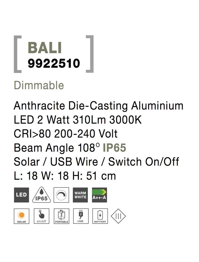 Лед лампион / правостояща лампа, външна лампа 9922510 e осветително тяло в съвременен стил, което е подходящо за градинско осветление, външно осветление. Тази led лампа е с европейско качество гарантирано от nova-luce (гърция)- компания с традиции в изработката на лед осветителни тела