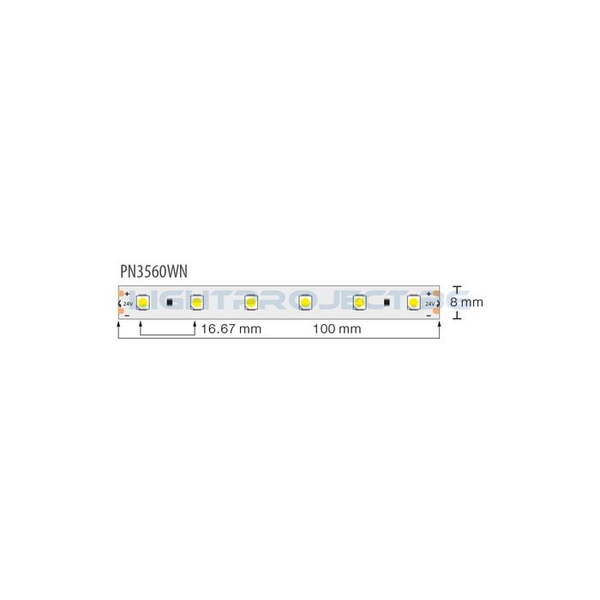 Стандартната дължина на лентата е 5m при работно напрежение 24V DC. За осигуряване степен на защита IP54 е използвано нано-силиконово покритие.