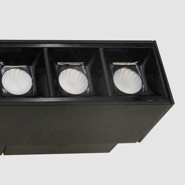 DARK LIGHT MAGNET е магнитен LED модул с монтаж към магнитен профил, подходяща за търговски обекти, домове, хотели, офиси и други помещения. Модулните LED осветители, които се монтират навсякъде по дължината на захранващата релса, за да акцентират над обектите на осветяване. Допълнително удобство на този тип осветителни системи е захранването (DC48V), което преминава през цялата дължина на релсата, дори при наличието на ъгъл. Предимство на системата е, че осветителите имат висок светлинен добив без заслепяване, което ги прави изключително подходящи за търговски обекти, за да експонирате стоката с насочената светлина, без тя да попада в очите на клиентите. Когато настъпи нужда от модернизиране на системата, могат да се заменят само лампите. Изключително високият коефициент на цветоразпределeние CRI – Ra 90, прави осветителното тяло подходящо за магазини, хотели, заведения и други, а цветната температура – 3000К допринася за уюта в дома.