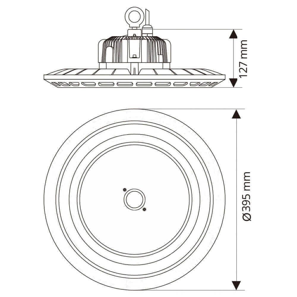 PDF Декларация 3D Файл СерияSCI-FI LED Мощност(W)200W Светлинен поток (lm)20000lm Цветна температура (K)5000K (неутрална светлина) Напрежение (V)AC85-265V Ъгъл на светлинния сноп (°)120° Степен на защитаIP65 Размери (mm)Ø395x127mm Начин на монтажвъншен монтаж Живот на осветителя (h)30000h Цвят на корпусачерен Светлинен източникLED Димиранене се димира Гаранция36 месеца гаранция Материалалуминий