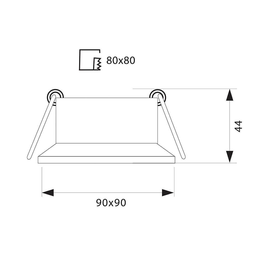 Декларация СерияJUNO Напрежение (V)230V ЦокълGU10 Степен на защитаIP20 Формаквадратна форма Размери (mm)90x90x44mm Начин на монтажза вграждане Max натоварванеmax 35W Цвят на корпусабял Гаранция12 месеца гаранция Материалалуминий Монтажен отвор80x80mm