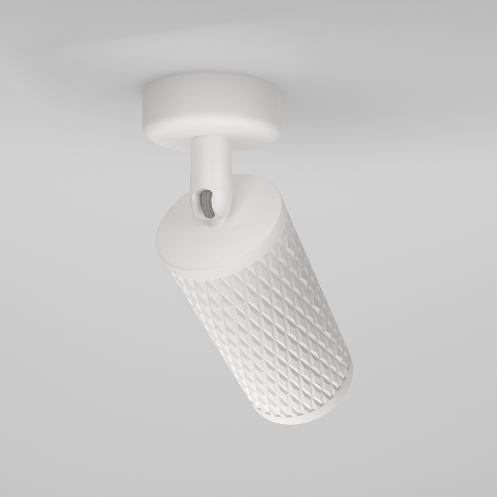Описание на продукта: текстурирано метално тяло. Въртящ се механизъм. Източникът на светлина е лампа с основа GU10 (не е включена).