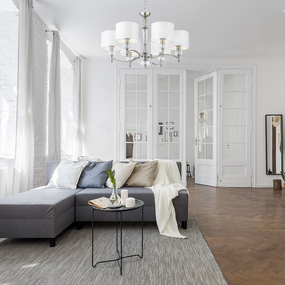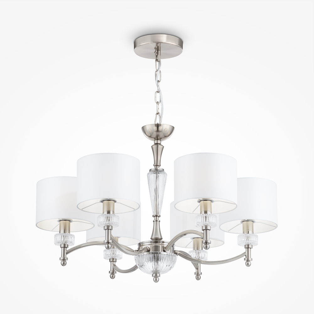 Срок на доставка: ПО ЗАПИТВАНЕ Спецификации * Тип лампа:Chandelier * Мощност:40 * Брой крушки:6 * Фасунга:E14 * Волтаж:AC220_240 * Минимална височина, mm:545 * Максимална височина, mm:1460 * Диаметър, mm:700 * Цвят:Nickel * Материал:Metal and glass