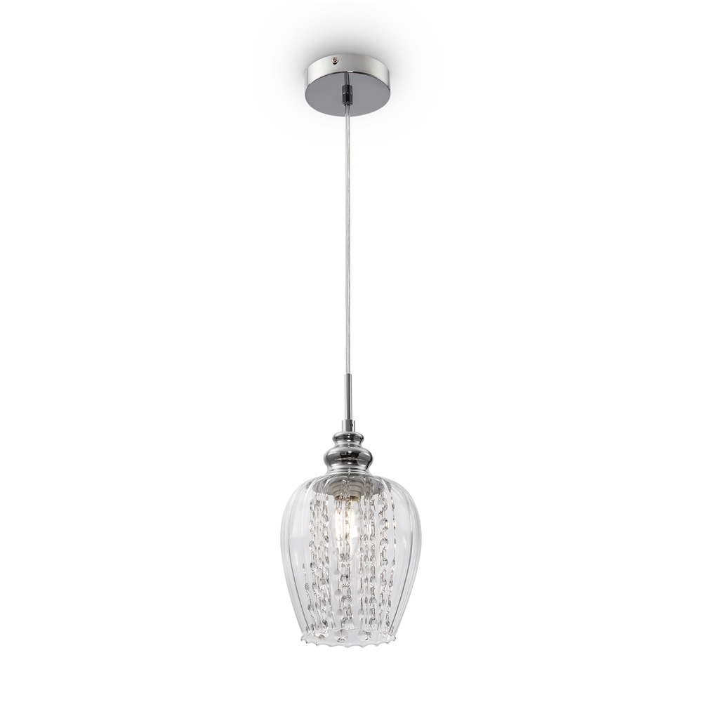 Описание на продукта: Метална рамка, стъклени дифузори в прозрачно (MOD044) или FUME (MOD033) стъкло. Декоративни кристални висулки.