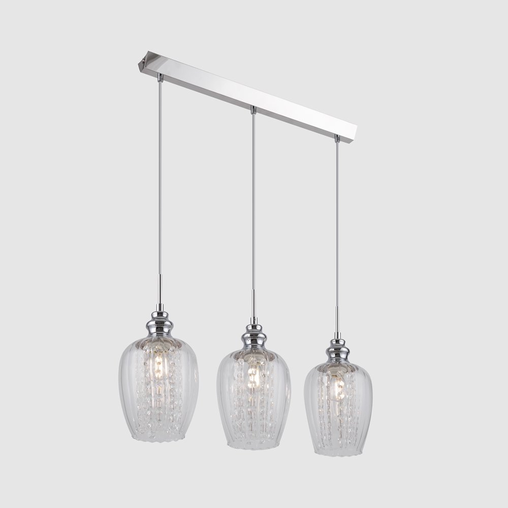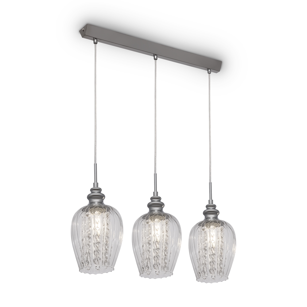 Срок на доставка: ПО ЗАПИТВАНЕ Спецификации * Тип лампа:Pendant lamp * Мощност:40 * Брой крушки:3 * Фасунга:E14 * Волтаж:AC220_240 * Минимална височина, mm:320 * Максимална височина, mm:1000 * Широчина, mm:520 * Цвят:Nickel * Материал:Metal