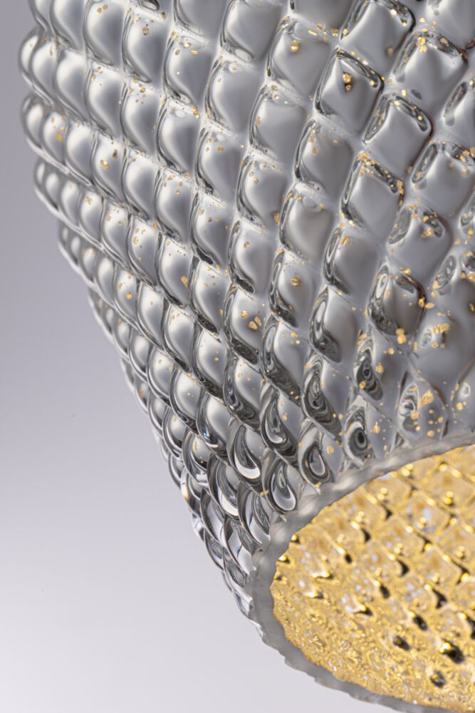 Описание на продукта: Издуханите стъклени нюанси имат вдлъбнатина. Метални фитинги. Височината на осветлението може да се промени, като се регулира дължината на шнура.