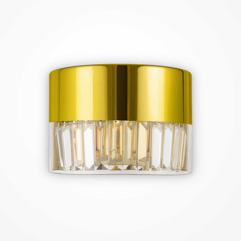 Описание на продукта: Фитинги от неръждаема стомана, цветни нюанси – злато, хром. Светлината на купола е направена от издухано стъкло, с кристални висулки вътре. Част от куполната светлина има огледално покритие