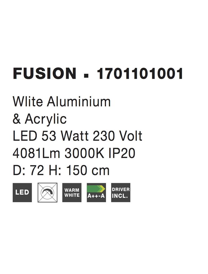 Срок на доставка: ПО ЗАПИТВАНЕ Продуктова информация Материал: White Aluminium & Acrylic Тип крушка: LED 53 Watt 230 Volt 4081Lm 3000K IP20 Код: 1701101001 Тип продукт: INFINITY Размери: D: 72 H: 120 cm