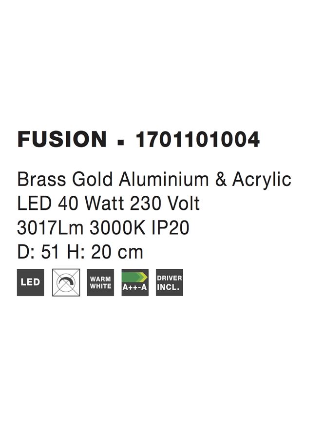 Brass Gold Aluminium & Acrylic LED 40 Watt 230 Volt 3017Lm 3000K IP20 D: 51 H: 20 cm