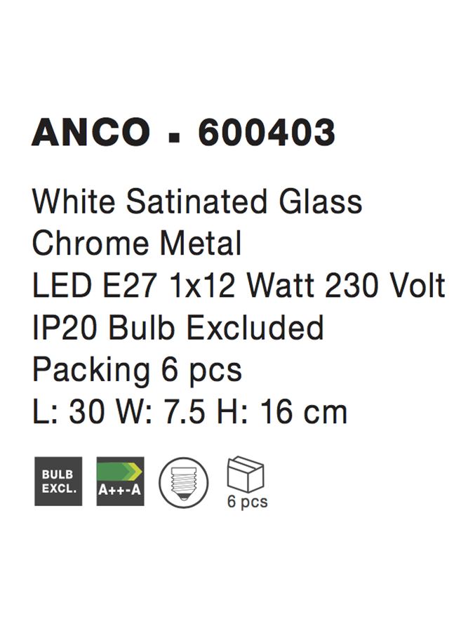 Wall Lamp Satinated White Glass Chrome Metal LED E27 1x12W L:30 W:7,5 H:16cm