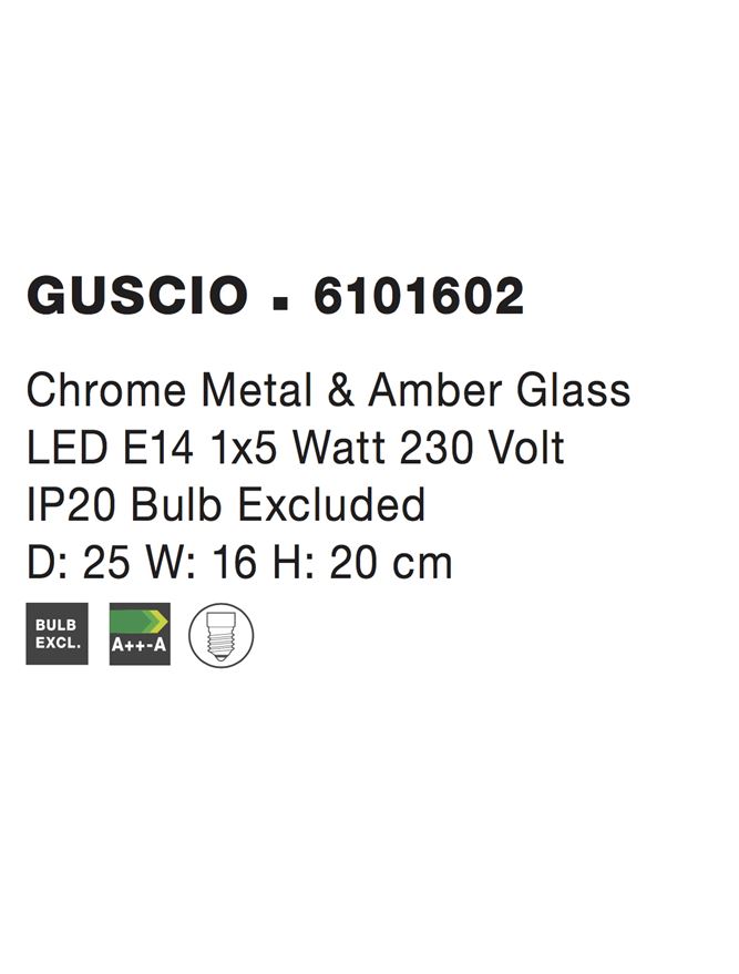 Chrome Metal & Amber Glass LED E14 1×5 Watt 230 Volt IP20 Bulb Excluded D: 25 W: 16 H: 20 cm