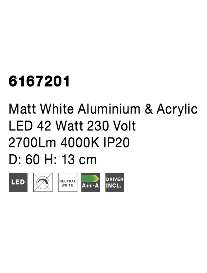 Matt White Aluminium & Acrylic LED 42 Watt 230 Volt 2700Lm 4000K IP20 D: 60 H: 13 cm