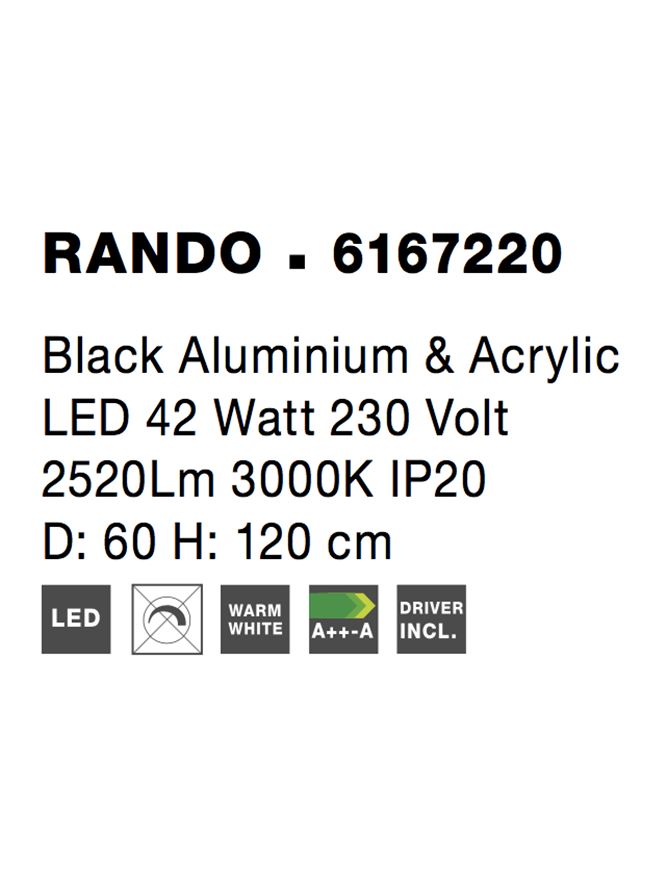Срок на доставка: ПО ЗАПИТВАНЕ Продуктова информация Материал: Black Metal & Acrylic Тип крушка: LED 42Watt 3000K 2520Lm IP20 Код: 6167220 Тип продукт: COMFORT Размери: D: 60 H: 120 cm