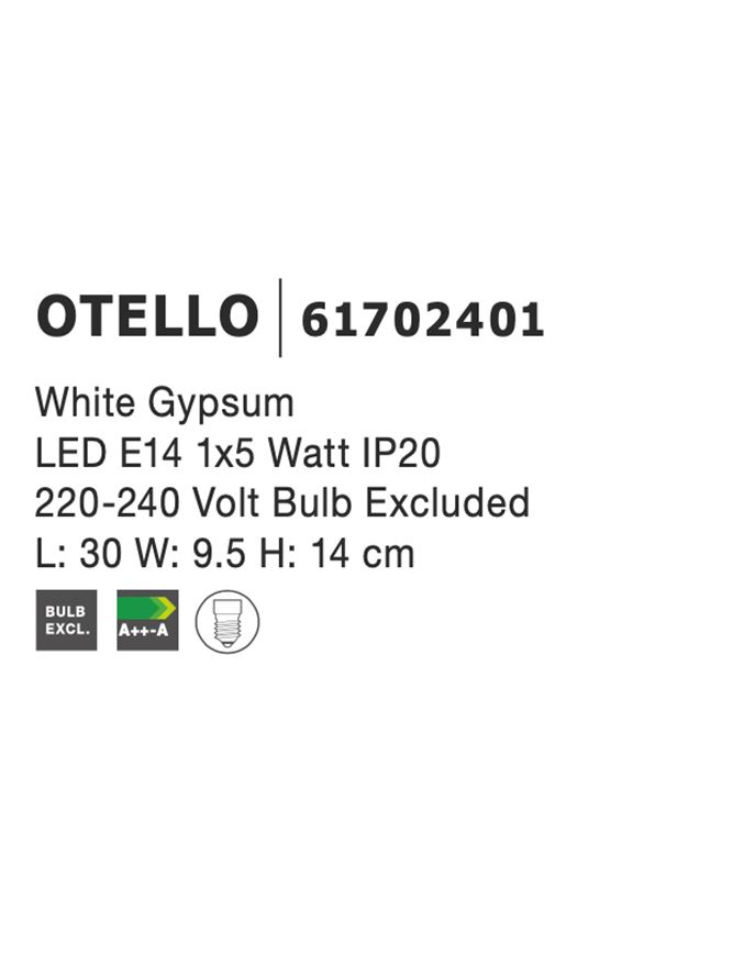 Срок на доставка: ПО ЗАПИТВАНЕ Продуктова информация Материал: White Gypsum Тип крушка: E14 1x40W IP20 Bulb Excluded Код: 61702401 Тип продукт: GYPSUM AND CONCRETE SPOT LIGHTS Размери: L: 30 W: 9.5 H: 14 cm