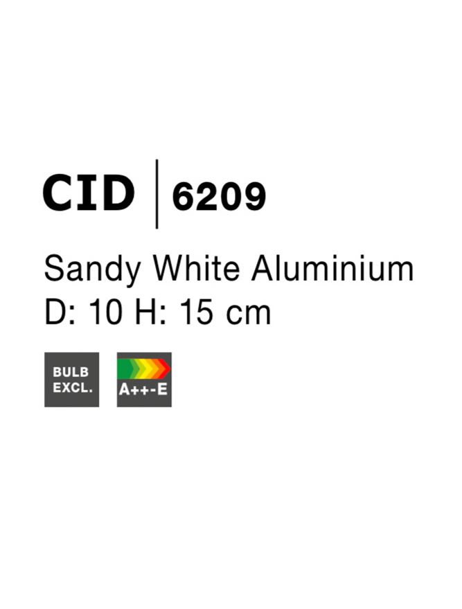 Срок на доставка: ПО ЗАПИТВАНЕ Продуктова информация Материал: Sandy White Aluminium Тип крушка: Frame Код: 6209 Тип продукт: GU10 AND LED SPOTS Размери: D: 10 H: 15 cm