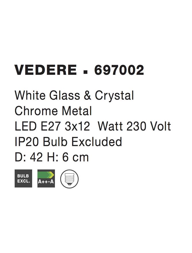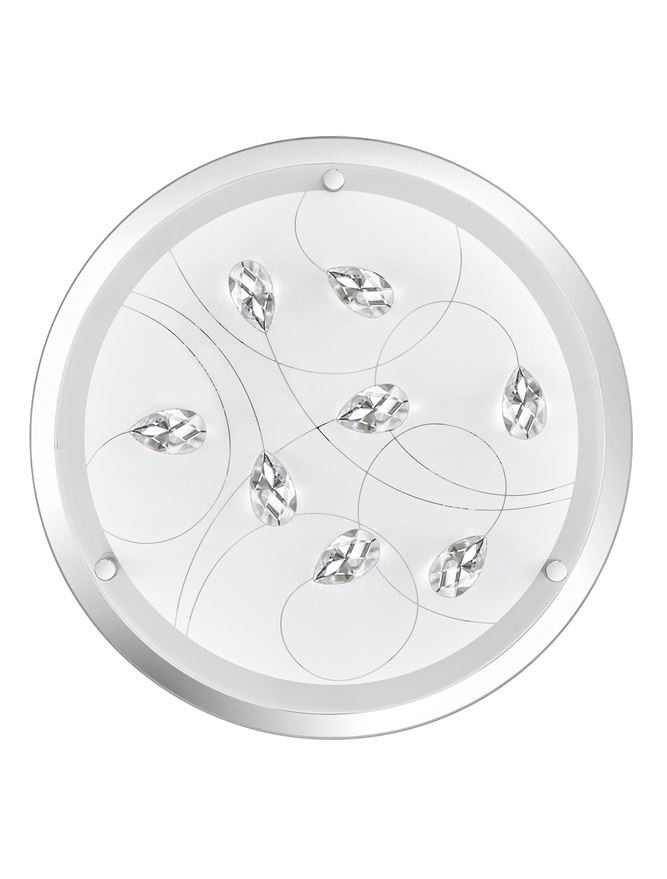Ceiling Light White Glass & Crystal Chrome Metal LED E27 2x12W D:31,5 H:6cm